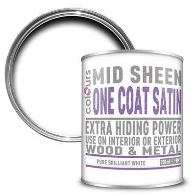 Colours One Coat Pure Brilliant White Satin Metal Wood Paint 0 75l Diy At B Q