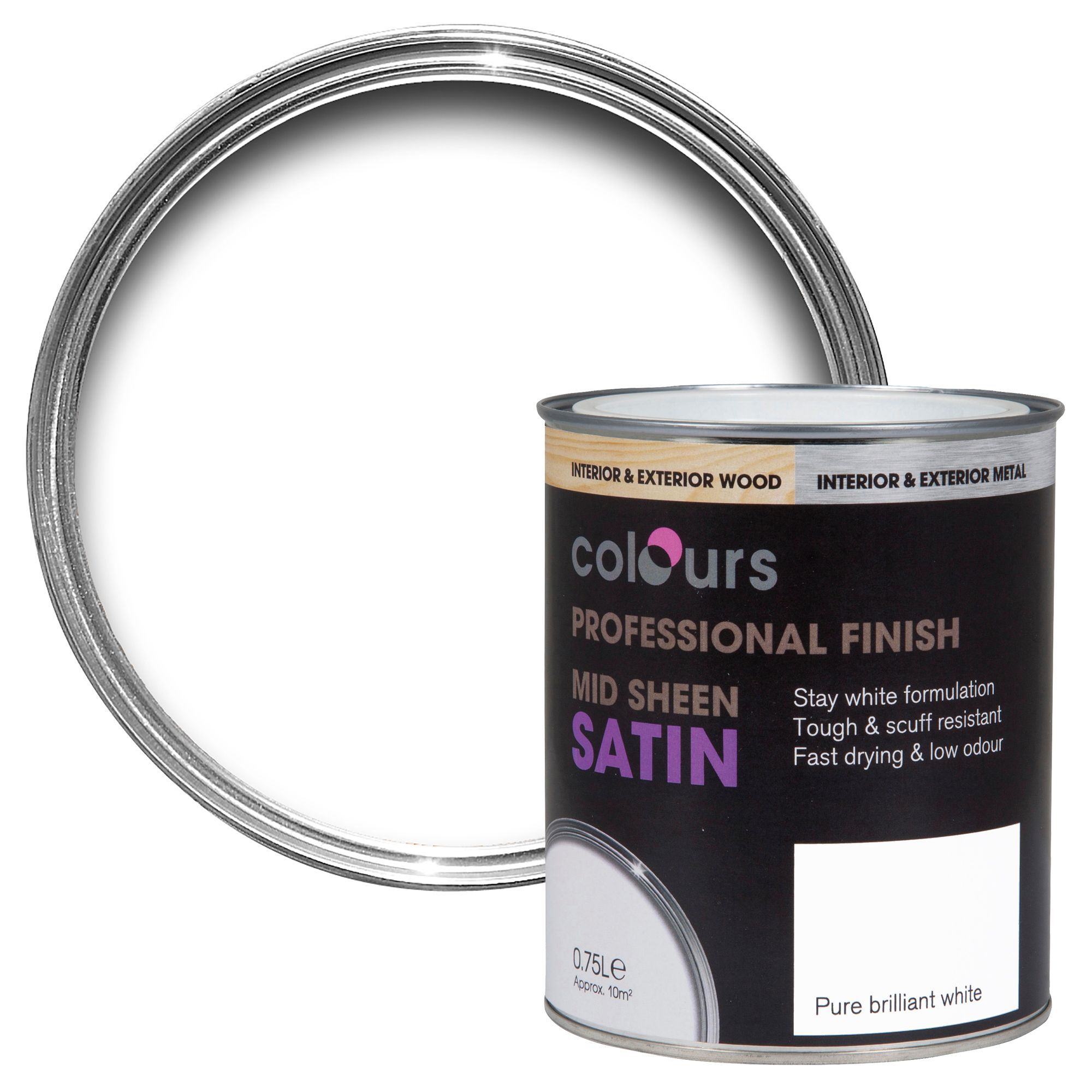 Colours Pure Brilliant White Satin Wood Metal Paint 0 75l Diy At B Q