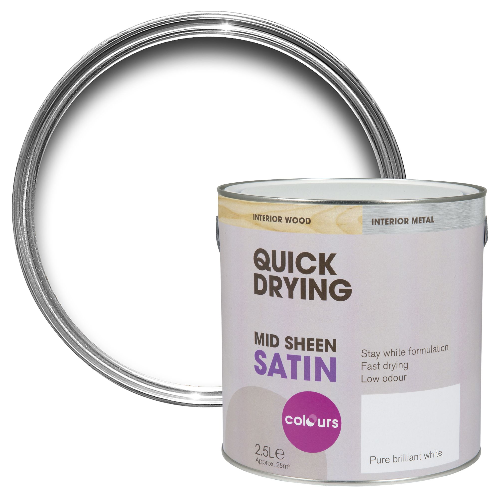 Colours Pure Brilliant White Satin Wood Metal Paint 2 5l Diy At B Q