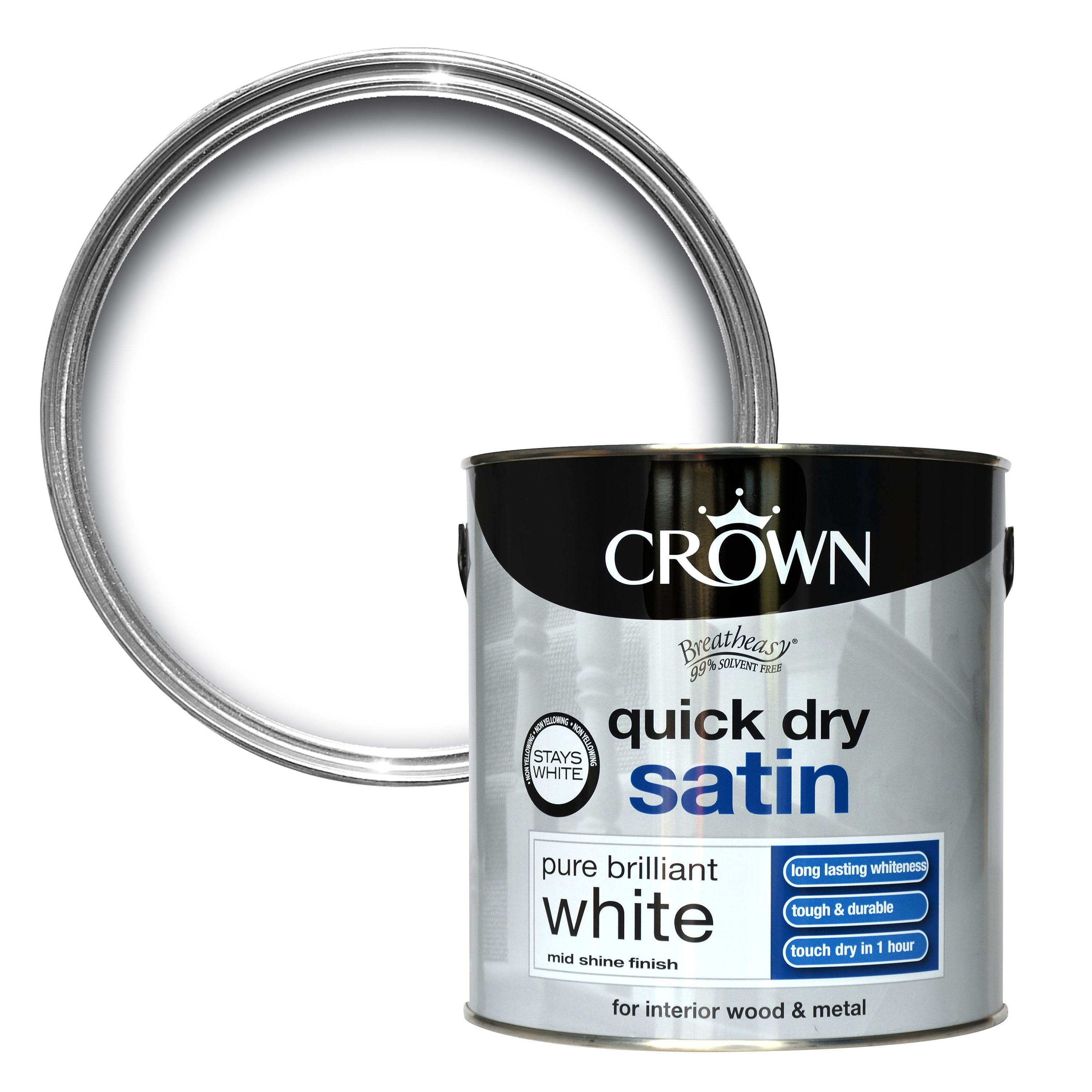 Crown Breatheasy Pure Brilliant White Satin Emulsion Paint 2 5l Diy At B Q